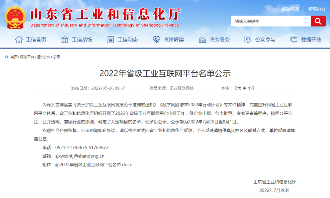 7月26日,山東省工業(yè)和信息化廳公布了2022年省級(jí)工業(yè)互聯(lián)網(wǎng)平臺(tái)名單,憑借自身在能源雙碳、安全生產(chǎn)工業(yè)互聯(lián)網(wǎng)雙跨領(lǐng)域的賦能實(shí)踐,和遠(yuǎn)Hi-IoT云平臺(tái)成功入選。