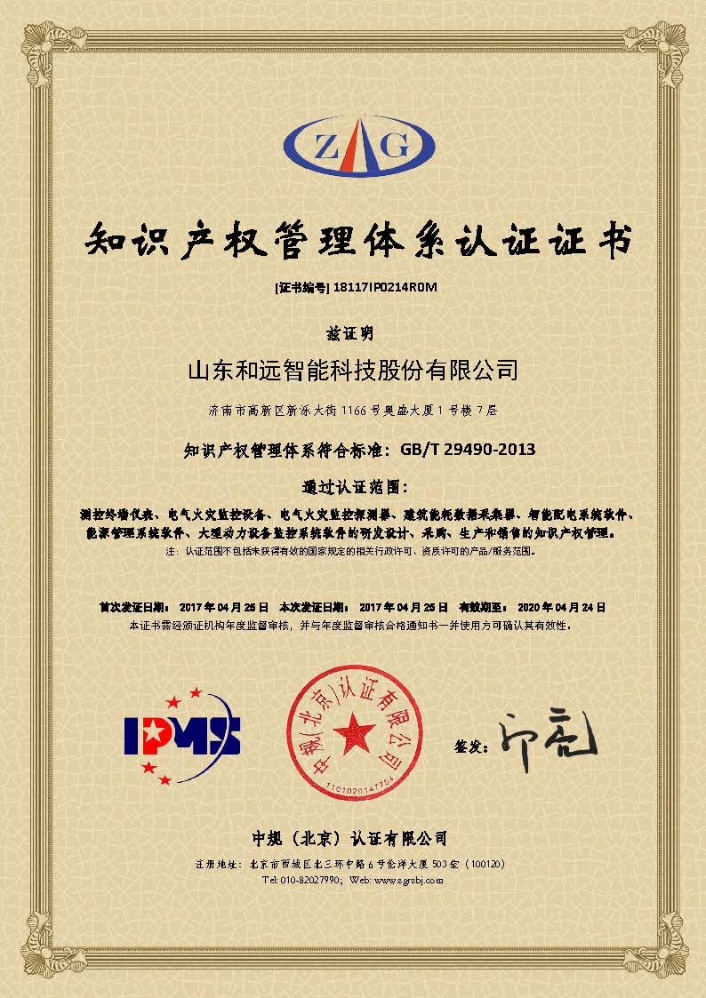 和遠(yuǎn)智能?chē)?yán)格按照GB/T 29490-2013《企業(yè)知識(shí)產(chǎn)權(quán)管理規(guī)范》的規(guī)定,建立企業(yè)知識(shí)產(chǎn)權(quán)管理標(biāo)準(zhǔn)體系,設(shè)置專(zhuān)人負(fù)責(zé)專(zhuān)利的申報(bào)管理工作,從產(chǎn)品研發(fā)到推廣過(guò)程中的知識(shí)產(chǎn)權(quán)獲得、保護(hù)、實(shí)施、激勵(lì)進(jìn)行有效的管理。公司已于2017年4月取得知識(shí)產(chǎn)權(quán)管理體系認(rèn)證證書(shū)。