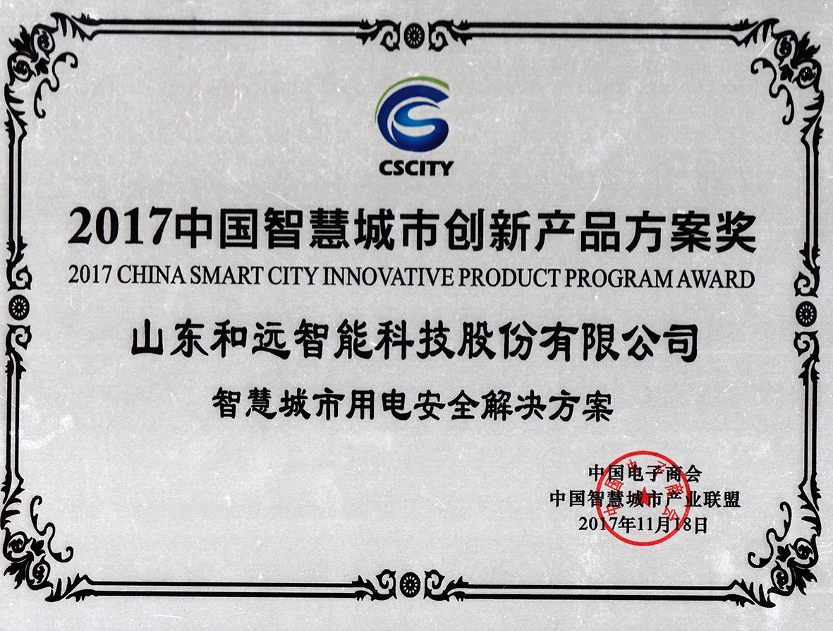 和遠(yuǎn)智能榮膺“2017年度中國(guó)智慧城市創(chuàng)新產(chǎn)品方案獎(jiǎng)”