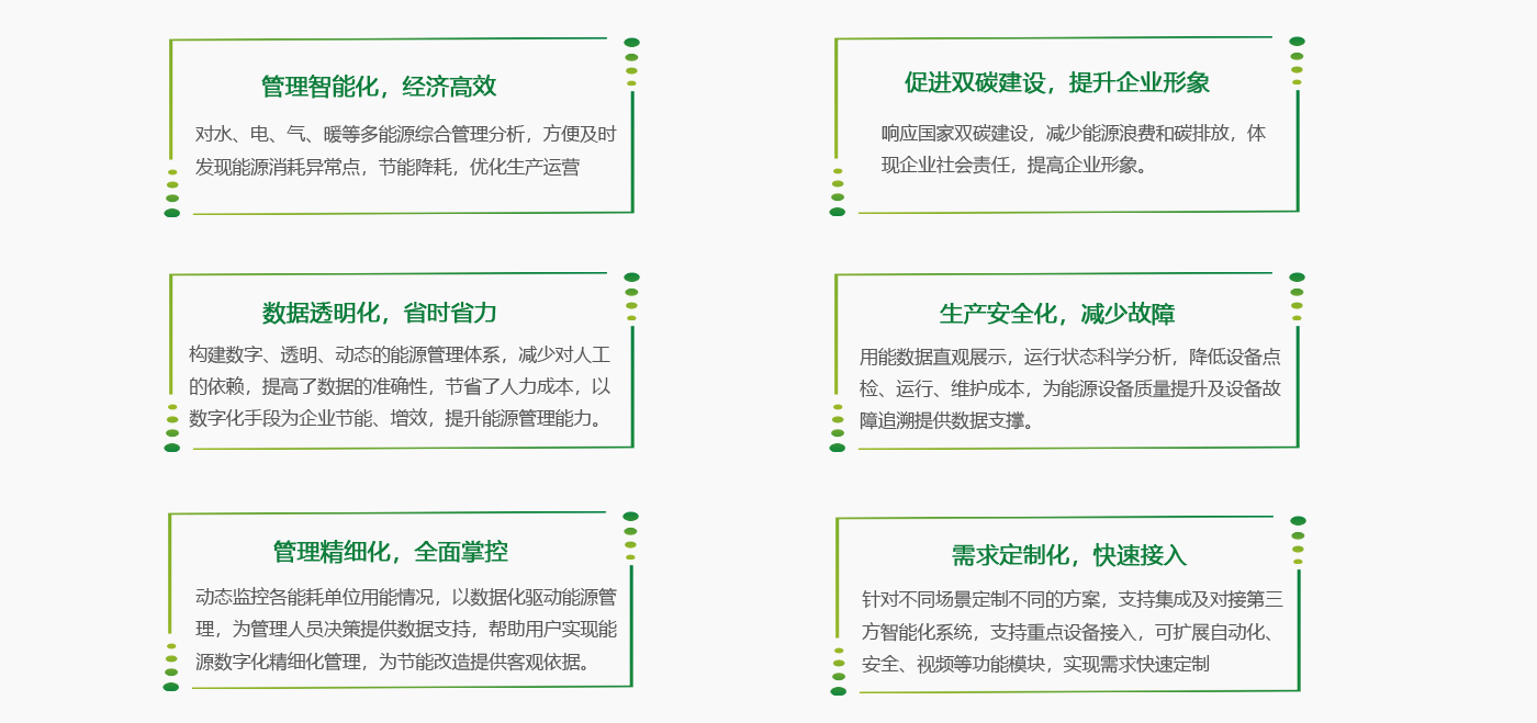 鐵路站房能源管理系統(tǒng)通過各類采集終端獲取用能數(shù)據(jù),實(shí)現(xiàn)對鐵路站房內(nèi)電、水等各類能耗計(jì)量,完成數(shù)據(jù)采集與存儲(chǔ)、分類分項(xiàng)分戶分專業(yè)數(shù)據(jù)統(tǒng)計(jì)與分析等,做到能源消耗可視化、信息化。系統(tǒng)可幫助鐵路相關(guān)管理部門實(shí)現(xiàn)能耗預(yù)警,節(jié)能減排,提高能源利用率,降低用戶成本,提高風(fēng)險(xiǎn)預(yù)判能力。結(jié)合大數(shù)據(jù)分析,還可實(shí)現(xiàn)資產(chǎn)全鏈條全生命周期的管理,輔助優(yōu)化用能結(jié)構(gòu)、節(jié)能降耗、減少碳排放、降低成本。